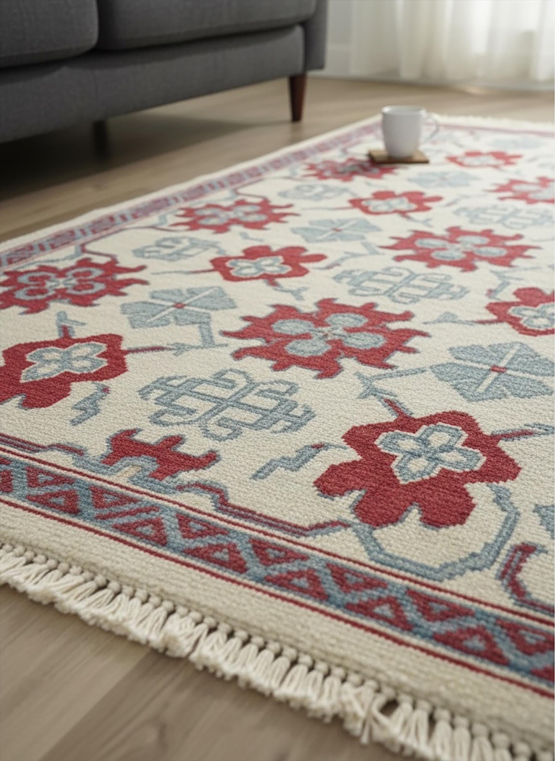 • Shedding: It is normal for new hand-knotted wool rugs to shed fibers, especially within the first few months of use. This is a natural characteristic of the material.