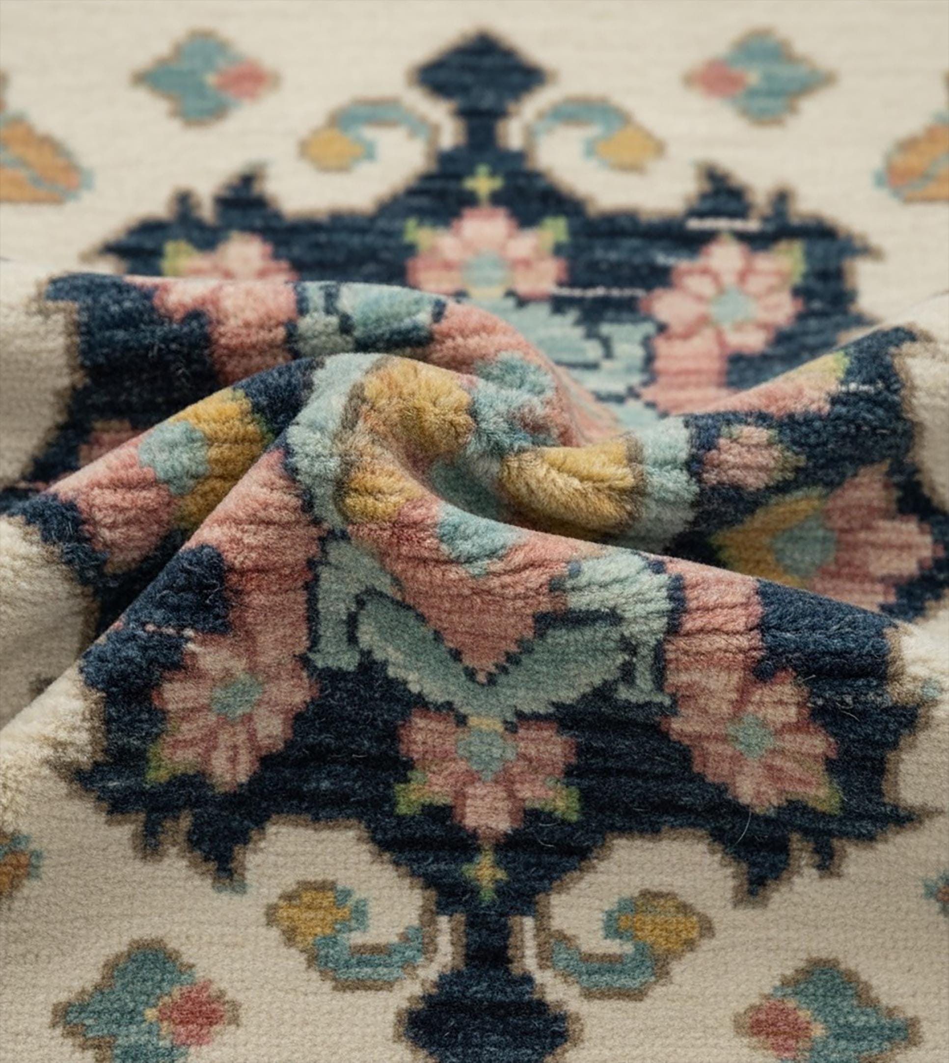 • Natural Dye Variability: The use of natural dyes means colors can vary slightly from one batch to another. Maintaining consistent shades of teal, off-white, and sage green across a large rug is a significant challenge.