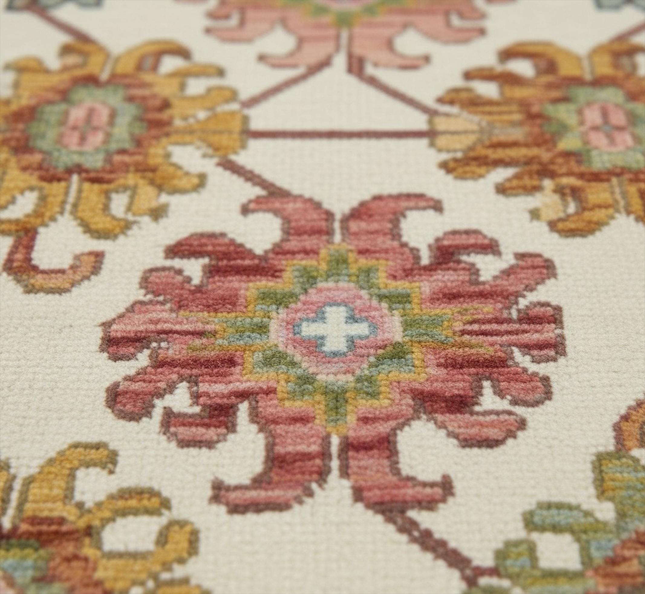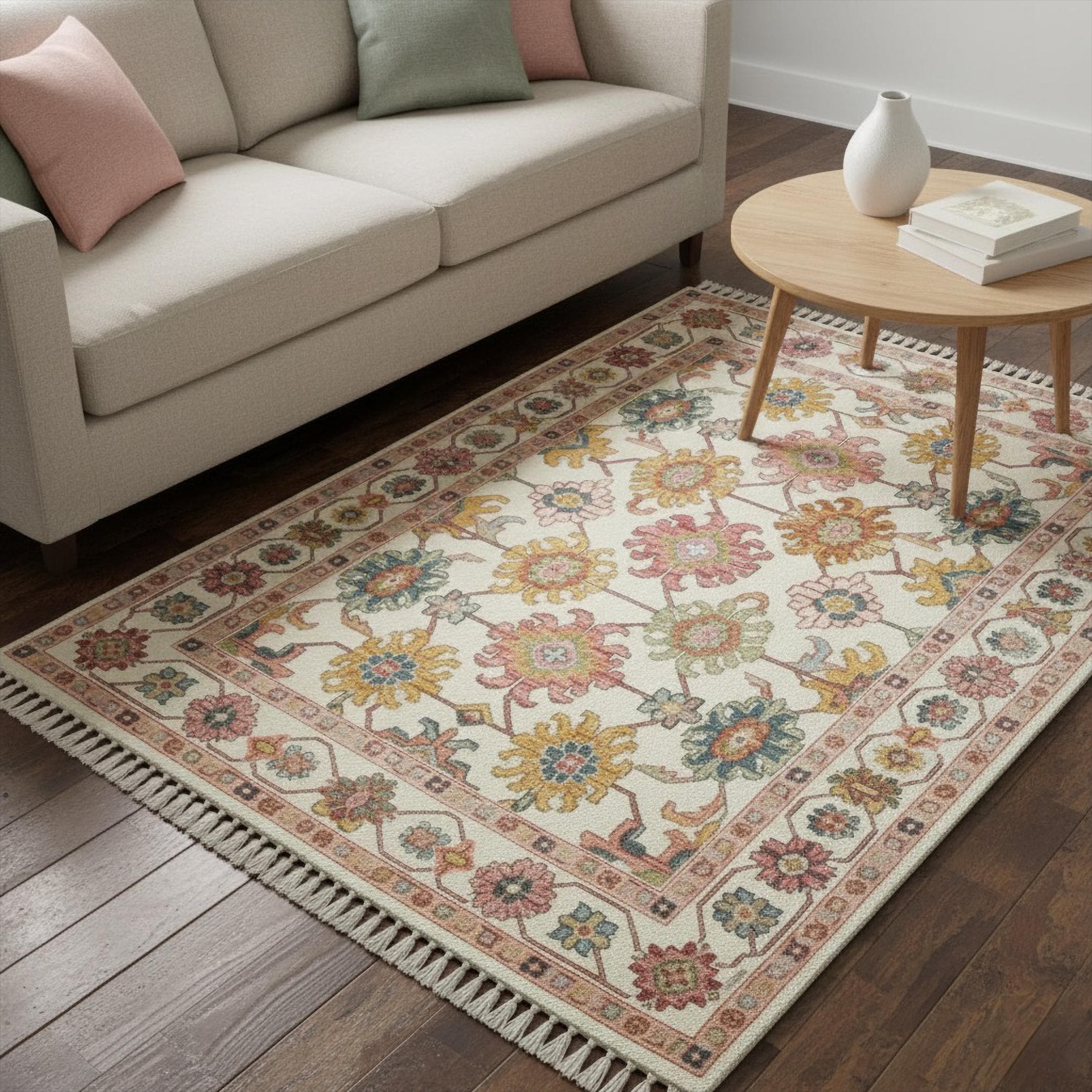 This hand-knotted 100% wool Oushak area rug is a testament to timeless elegance, crafted in a classic rectangular shape with a soft, medium pile for comforting texture underfoot. Its striking design features a soothing cream primary color field beautifully accented by a vibrant, multicolor floral medallion pattern, instantly injecting warmth and sophistication into your home. Ideal for Bohemian, Farmhouse, or Traditional styles, this durable, indoor-only piece utilizes natural, renewable wool fibers, offering you a luxurious, stylish, and long-lasting anchor that elevates your living room or bedroom with its inherent charm.
