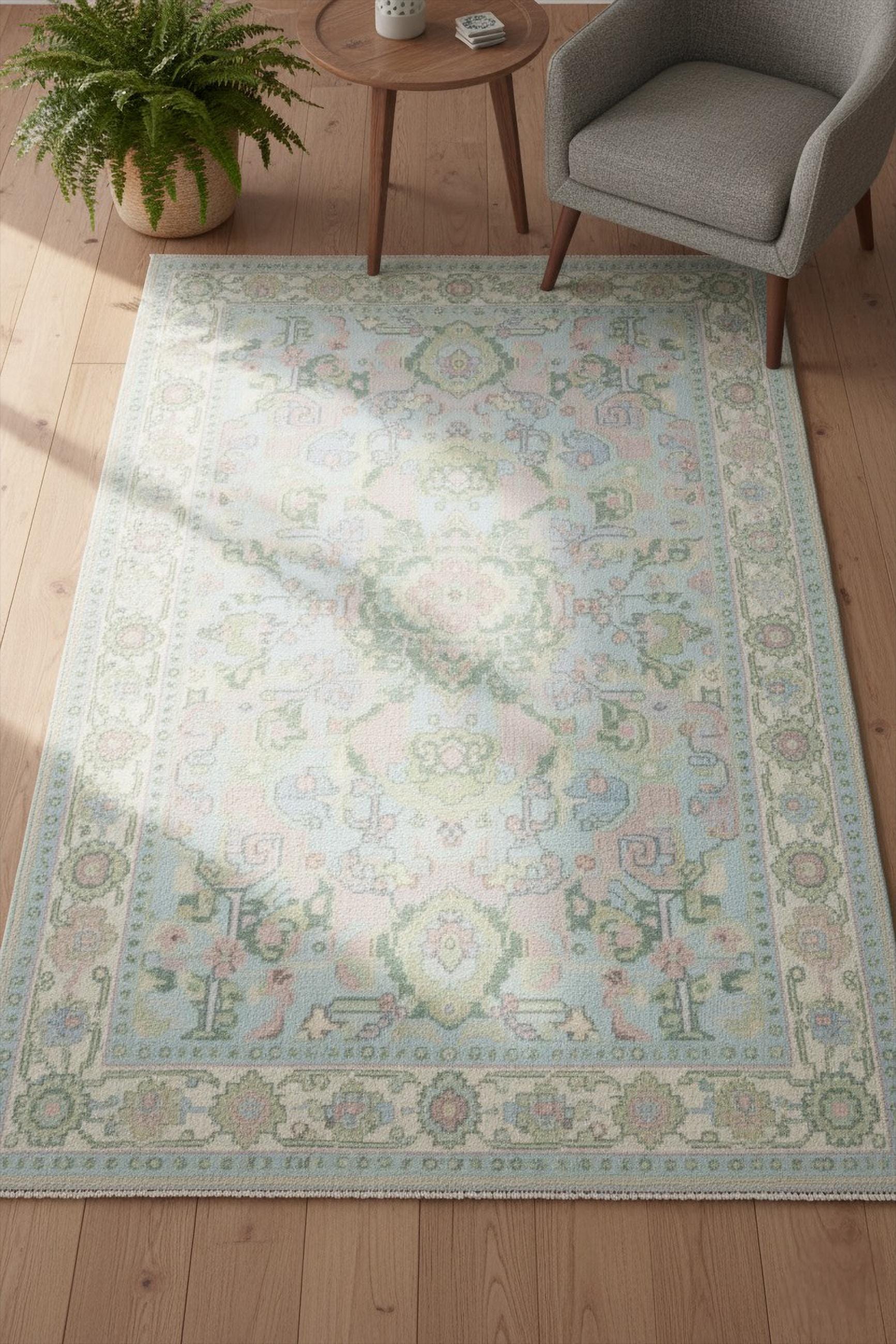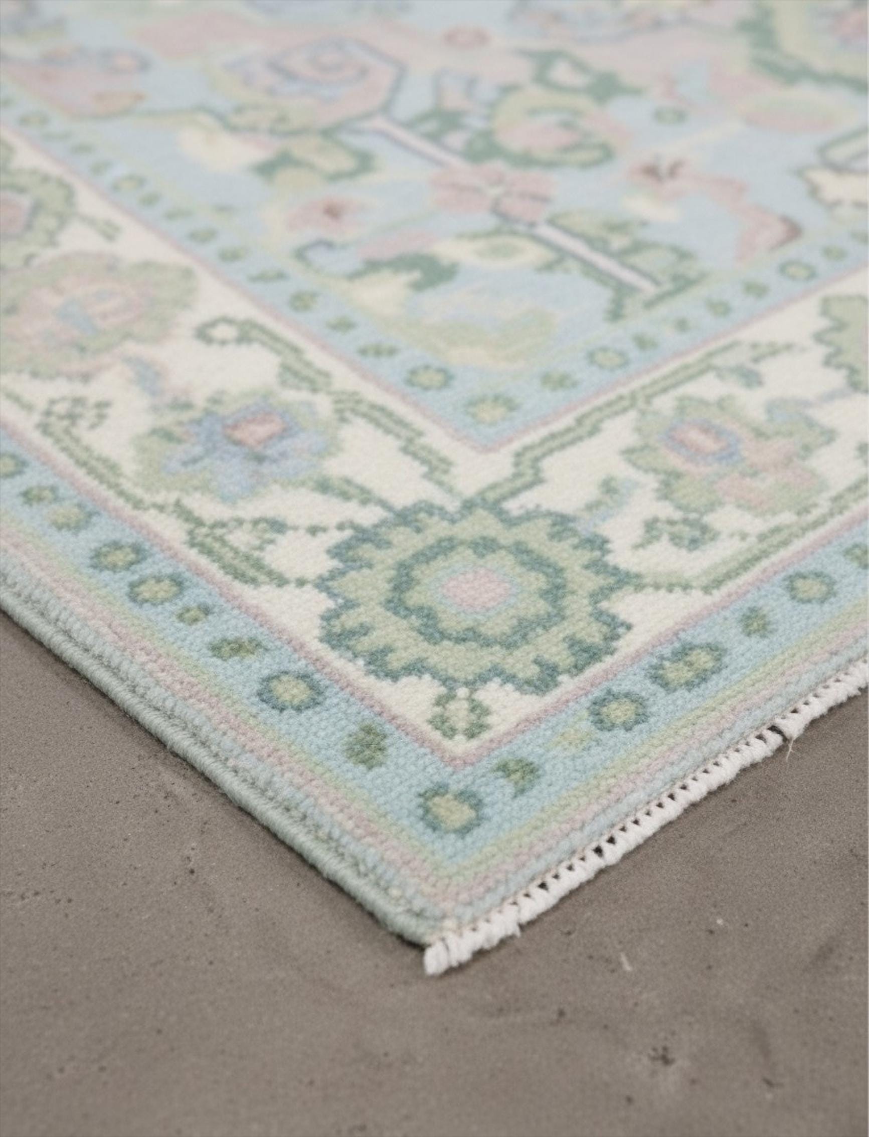 This Hand Knotted Oushak Area Rug in a Pastel Blue offers an instant uplift of serene tranquility to your space. Its Low to Medium Pile wool blend is soft underfoot, delivering a comforting, luxurious texture perfect for a Bedroom or Nursery. Featuring a timeless, Distressed Medallion pattern, this Rectangle rug effortlessly complements Shabby Chic and Bohemian styles. It is more than just decor it’s an investment in comfort and sustainable style, providing an elegant, ethically sourced foundation that makes any room feel instantly more welcoming and peaceful.