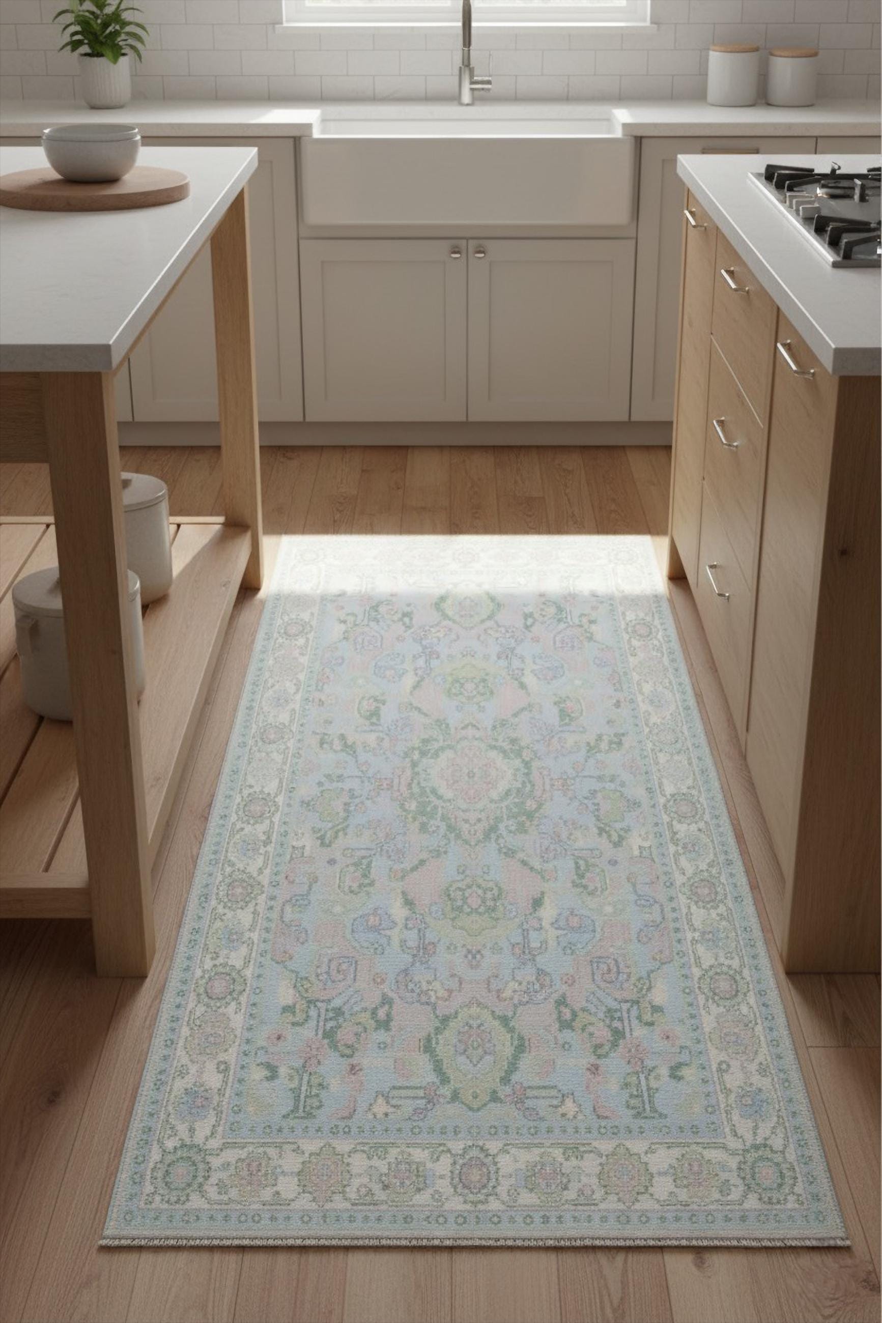Pastel Blue Colorful Floral Oushak Rug, Traditional Hand Knotted Wool Area Rug For Bedroom, 5x8 6x9 8x10 Living Room Rug, Kitchen Runner Rug