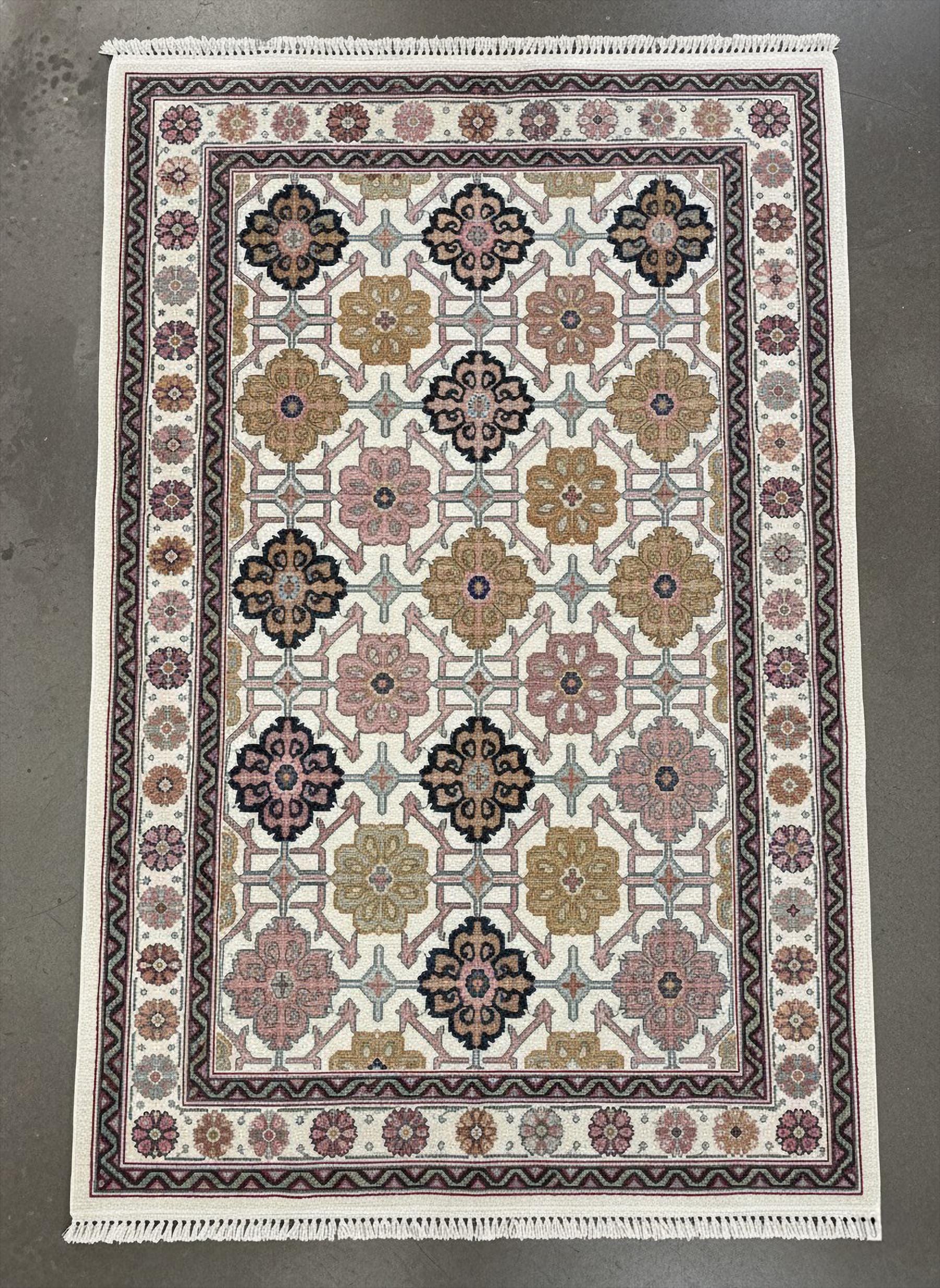 Ivory Colorful Floral Oushak Rug, Geometric Traditional Hand Knotted Wool Area Rug For Bedroom, 6x9 8x10 Living Room Rug, Kitchen Runner Rug