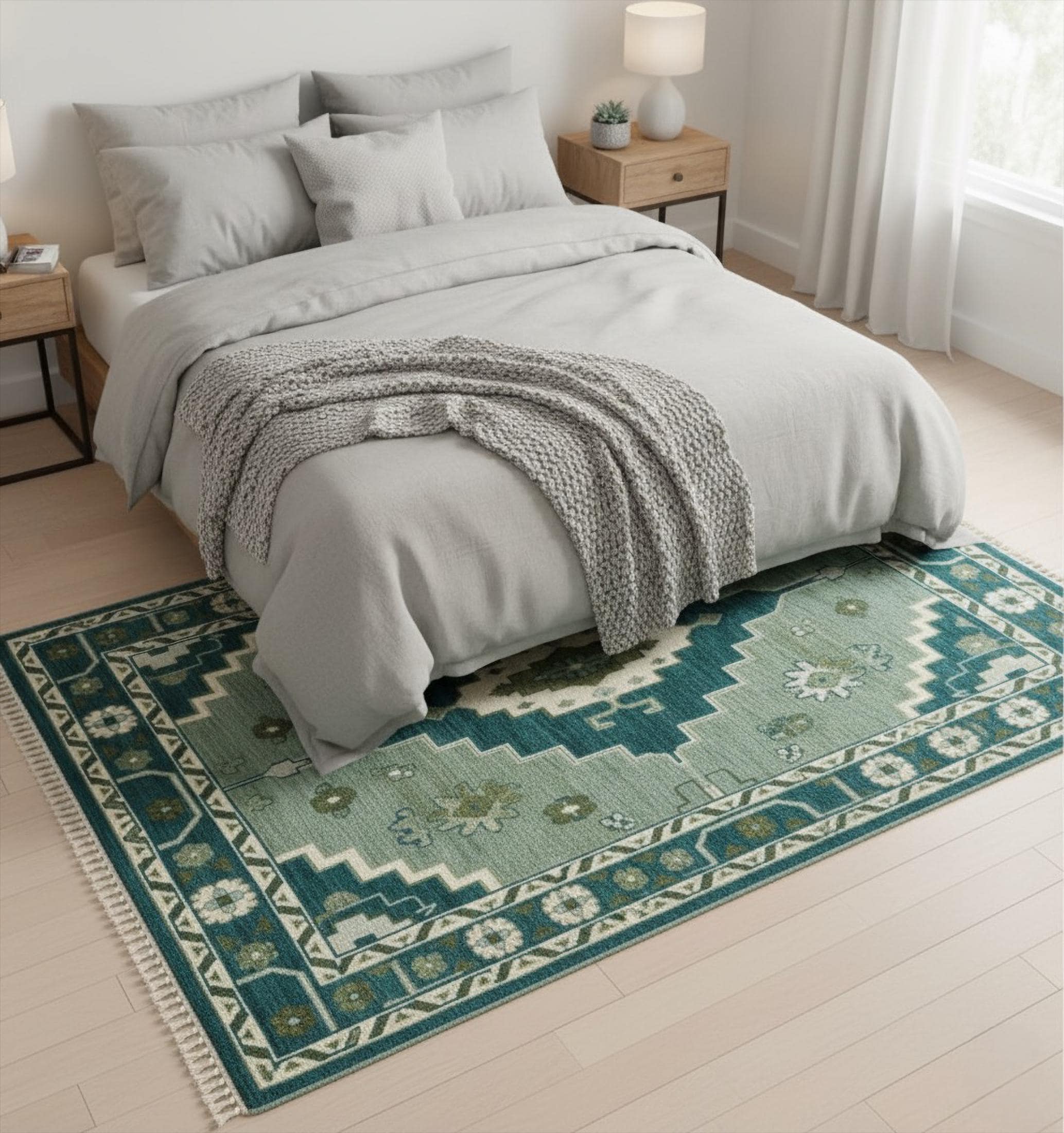 • Pattern: Traditional Geometric Medallion and Intricate Floral Border (Oushak Style)
