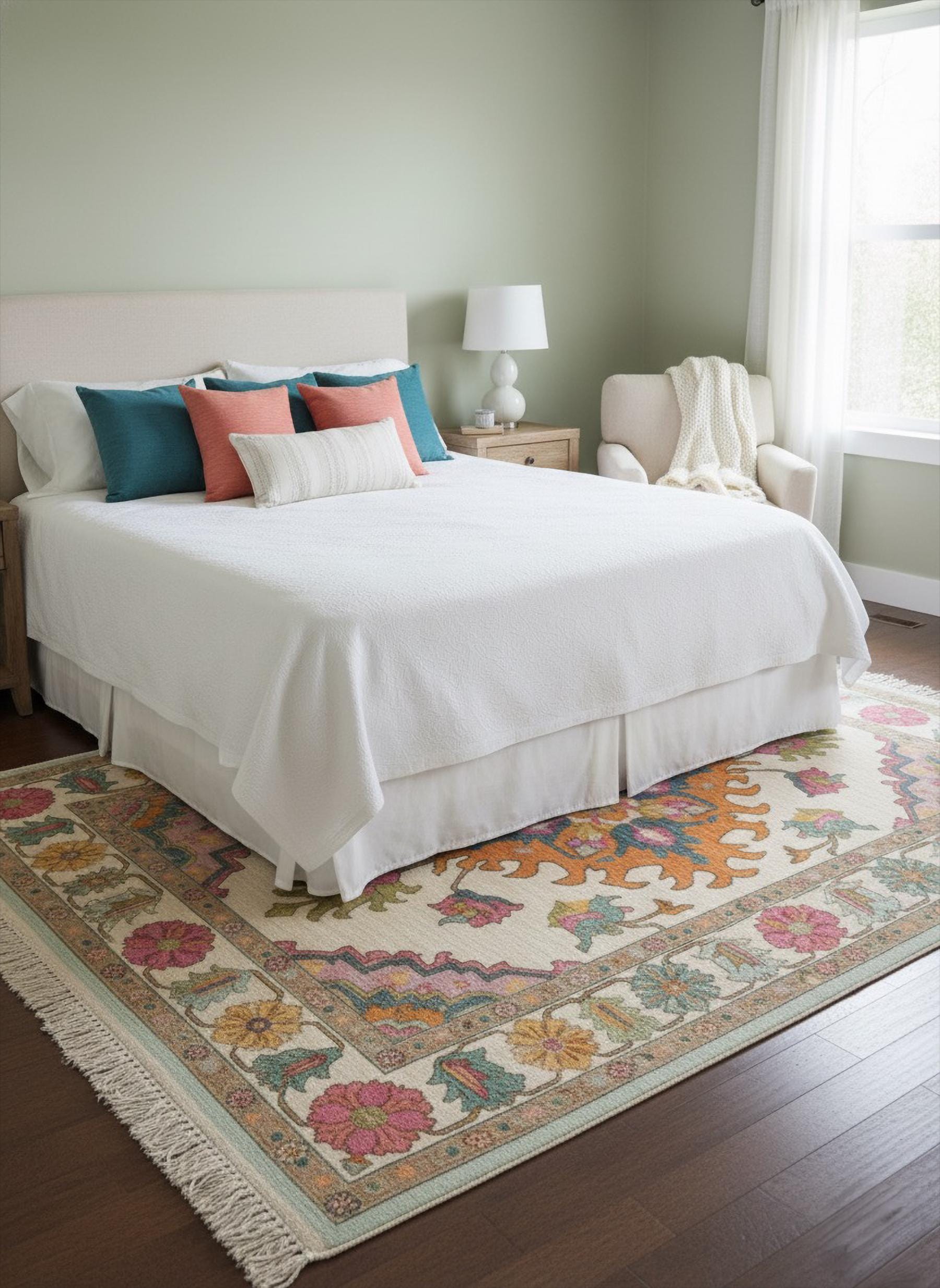 • Color: Features a Muted Ivory with Soft Pastel Accents in Sage Green, Blush Pink, and Light Blue.
