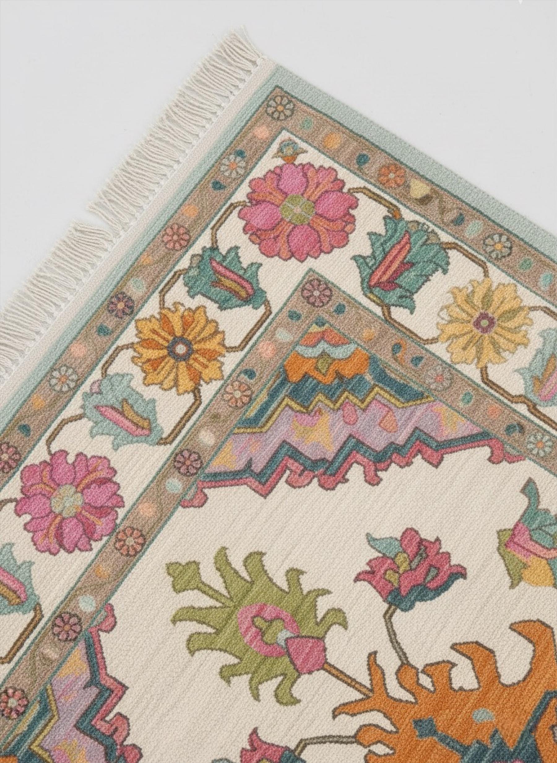 • Natural Dye Variability: The use of natural dyes means colors can vary slightly from one batch to another. Maintaining consistent shades of teal, off-white, and sage green across a large rug is a significant challenge.