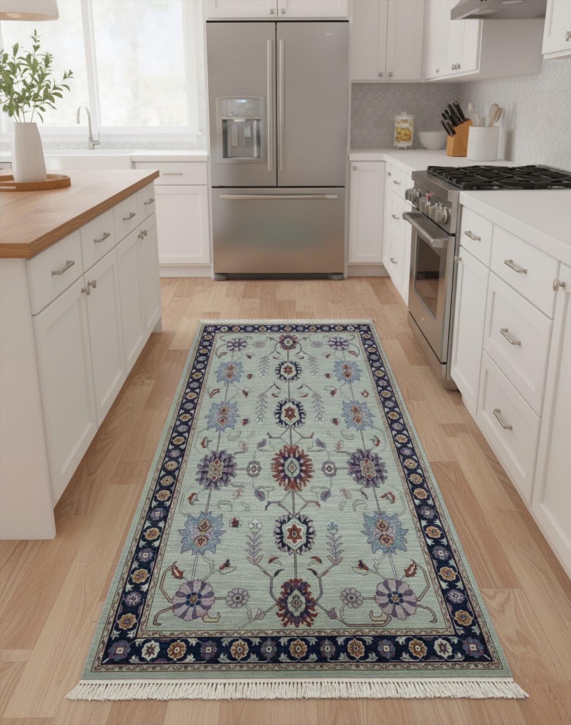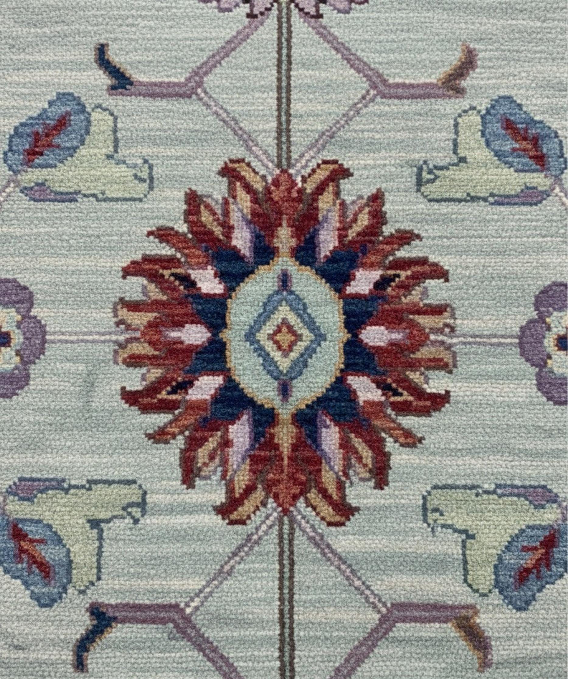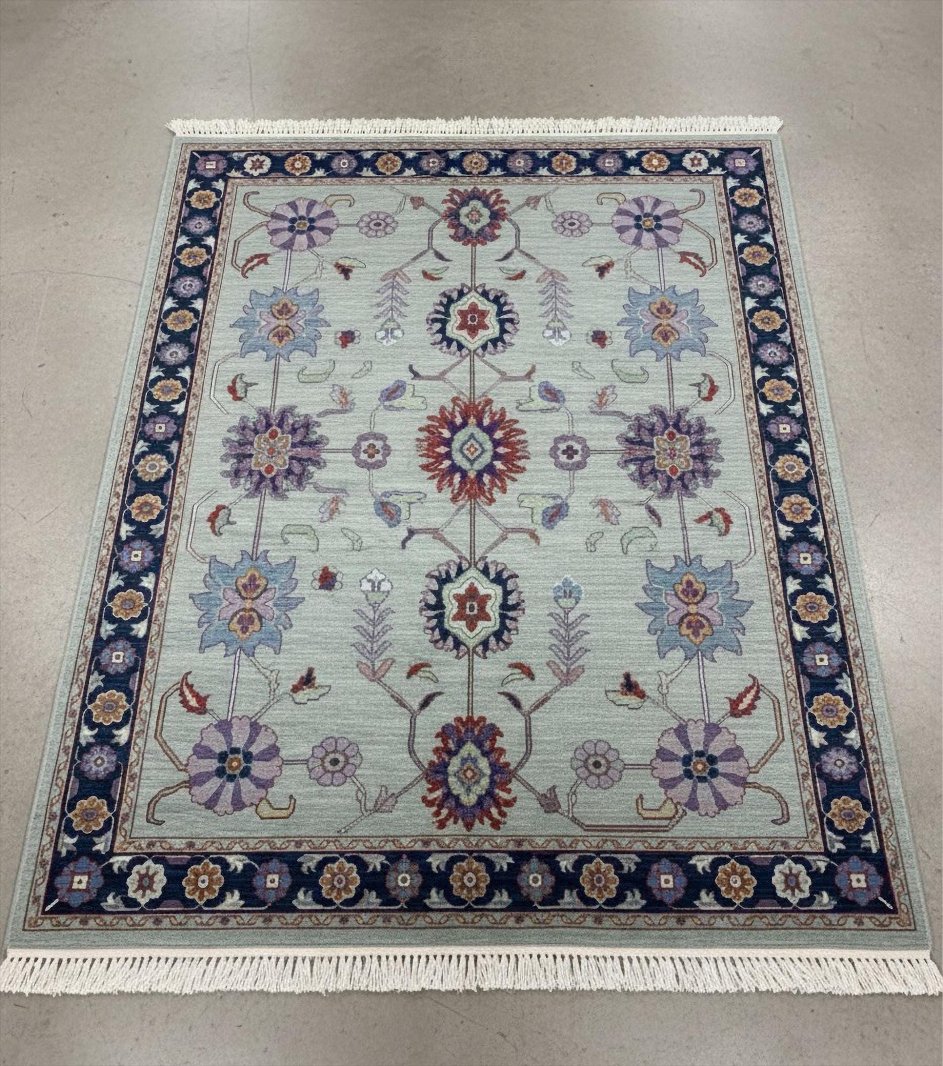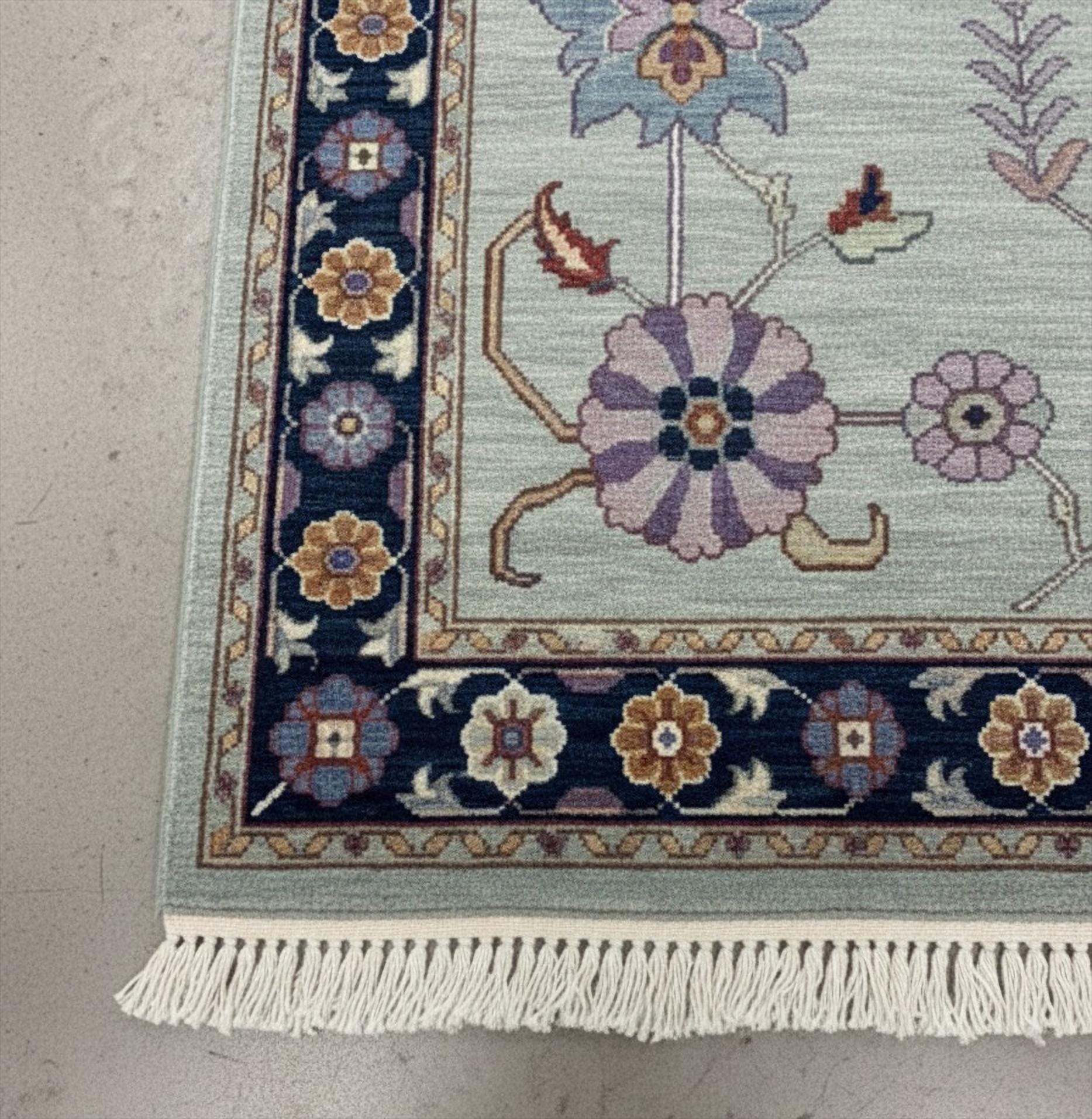 Bring home the soft, calming beauty of this hand knotted Oushak wool rug crafted with care, detail, and timeless charm. Its soft mint green backdrop and delicate floral pattern instantly warm up your space, creating a cozy, inviting feeling the moment you walk in. This is the kind of rug that makes your home feel finished, loved, and stylish without trying too hard. Perfect for everyday comfort and long-lasting beauty.