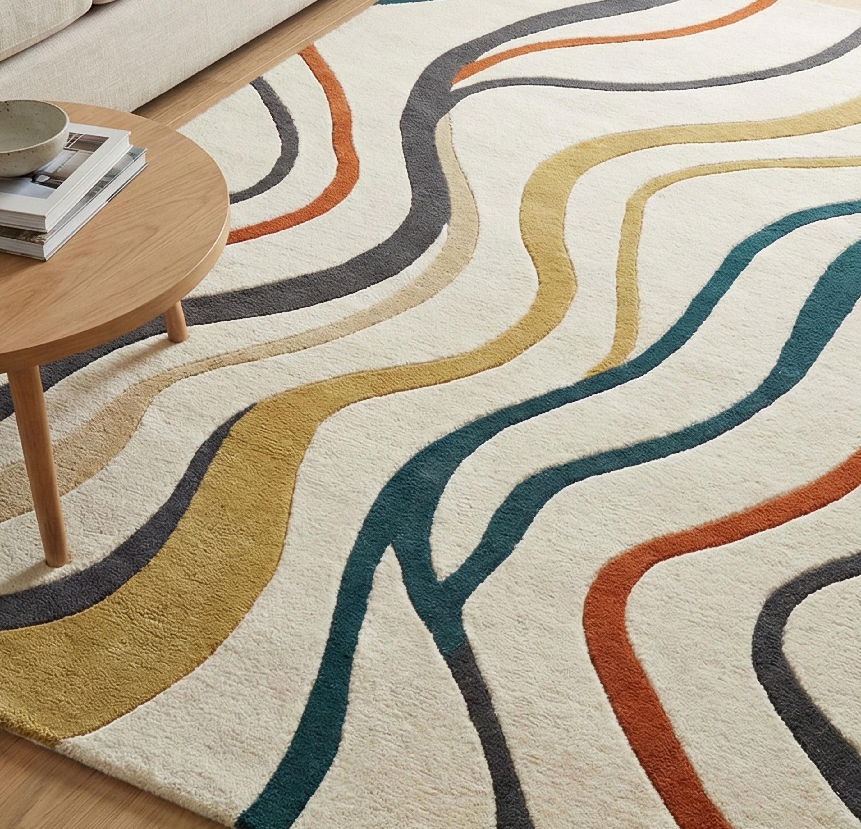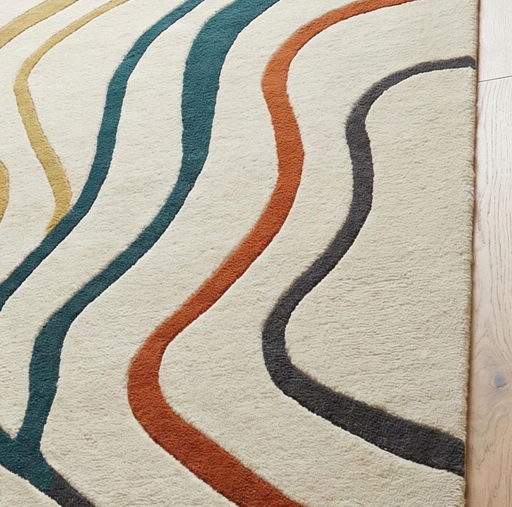 Add warmth and modern charm to your space with this hand tufted wool rug. The flowing abstract wavy create a calm, artistic look and an inviting focal point for your living room or bedroom. Soft and plush underfoot, it brings comfort, style, and effortless elegance without overwhelming your décor.